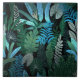 Tropical Aloha Exotic Blue Jungle Pattern at Night Ceramic Tile