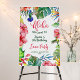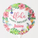 A colorful Aloha Birthday Party Balloon with a Happy Watercolor Tropical Floral Theme featuring blush pinks hibiscus, tropical palm leaves, and Exotic birds. Perfect for a Summer Celebration and to create a joyful atmosphere. You can change the text from the Personalize Menu. Matching products are available.
