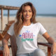 Transport yourself to a tropical paradise with this delightful "Aloha Summer" t-shirt that brings the warm spirit of Hawaii to your summer wardrobe. The friendly Hawaiian greeting "Aloha" perfectly captures the laid-back, welcoming vibe of island life, while celebrating the magic of summer season. This charming design embodies the essence of tropical getaways, tiki bars, luau parties, and that blissful island state of mind we all crave during the warmer months. Perfect for women who dream of palm trees swaying in ocean breezes, this tee is ideal for beach vacations, summer festivals, poolside relaxation, or simply bringing a touch of paradise to your everyday adventures. Let this shirt remind you to embrace the aloha spirit of love, peace, and joy that makes every summer day feel like a mini vacation.