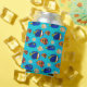 Sea life themed can cooler printed all over with hand drawn blue and orange tropical reef and aquarium fish over a rippled coral background