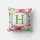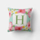 Tropical Aqua Pink Flowers Pattern Custom Monogram Throw Pillow