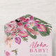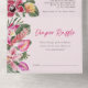 Tropical Baby Shower All in One Invitation. Plan your baby shower effortlessly with our all-in-one 'Aloha Baby!' invitation with a diaper raffle card featuring a delightful hummingbird. This beautifully coordinated invitation is filled with elegant modern touches and vibrant colors, showcasing lush green palm and monstera leaves, vivid magenta and fuchsia orchids, and delicate blush pink hibiscus flowers. Ensure a cohesive and stylish celebration with this comprehensive invitation that includes everything you need to set the perfect tone for your event.