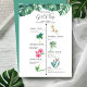 Invite your besties to a girl's weekend with this watercolor illustrated itinerary invitation. This girly design features a replica of my original watercolor monstera palm leaves, palm tree, bird of paradise flower, hibiscus flower, bamboo and magnolia flower. Your guest information are set in an elegant hand lettered script and serif typography. Perfect for bachelorette parties in Miami, Palm Springs, Hawaii or any tropical location. To see more ladies get together invitations by Victoria Grigaliunas visit www.zazzle.com/dotellabelle