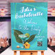 Tropical themed bachelorette party welcome sign. Add a QR code to "buy the bride a drink" - as an option, or remove it. Blue margarita with a lime is the drink featured, with big banana leaves, some tiny seashells and a pretty, yellow hibiscus flower. Beautiful aqua blue graphic waves are the background with white, shadow text in three places. Her name is at the top with "Bachelorette" or "Bridal Shower". The next lines are, "Welcome to the party". The QR code is in the bottom corner opposite the cocktail graphic. Size shown is 18 x 24 inches and can be set on an easel.