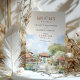 Announce your wedding in paradise with this beautiful "Save the Date" card showcasing the serene AYANA Resort in Bali. The front design features traditional Balinese architecture surrounded by lush greenery and tropical gardens, all rendered in soft watercolor with shades of teal, terracotta, and gentle greens. The back captures a tranquil view of AYANA’s serene landscape, complete with traditional pavilions and intricate details, creating a peaceful, tropical ambiance. This elegant card is perfect for a destination wedding, capturing the essence of Bali’s beauty and charm, inviting guests to a memorable celebration.