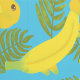 Have you ever seen wallpaper that's more bananas? It's a dog! It's a banana! It's dogs made out of bananas! These yellow dachshund style dogs made out of fruit are accompanied by green palm leaves and set against a bright blue background, and are ready to bring some cheerful color to your walls.