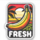 "Embrace the essence of the tropics with our vibrant banana sticker! This eye-catching design features a lively tropical theme, perfect for adding a burst of sunshine to your day. The sticker showcases a beautifully illustrated banana set against an idyllic backdrop of lush palm leaves and a breathtaking sunset. The rich, vivid colors capture the warmth and exuberance of a tropical paradise, making it a delightful addition to your collection. 'Fresh' is prominently displayed in a playful, bold font, emphasizing the sticker's fresh and lively spirit. Ideal for personalizing laptops, water bottles, notebooks, or any surface that needs a touch of tropical charm, this sticker is durable, weather-resistant, and exudes joy. Bring a piece of the tropics into your life or gift it to someone special who loves vibrant, nature-inspired designs!"