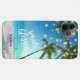 This inspirational tropical beach cell phone case features your own name and includes the quote, "Simply Blessed" over an image of a palm trees and string lights over a white sand beach with turquoise sea blue water. This is perfect for the person says the beach is "my happy place", or someone who loves the beaches of Hawaii, Florida, Mexico, or the Caribbean. Brighten up your life with this colorful design. Photography of the beach in Hawaii, and design © by TK Goforth and signed by the artist, all rights reserved.