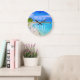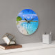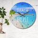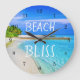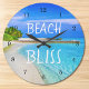 This clock is decorated with a beautiful beach scene and the words Beach Bliss.