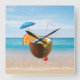 Tropical Beach,Blue Sky,Ocean Sand,Coconut Coctail Square Wall Clock