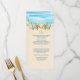 Two beach chairs are placed at the shore edge to represent the happy couple on this serene ocean-themed menu card. All wording can be changed to suit ANY celebration and the card can be customized for a wedding, shower, engagement party, anniversary celebration, or birthday party. Perfect for your beach-themed, or destination wedding or other event. Available with matching products.
