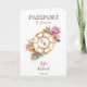 Modern and Colorful Floral Invitation Wedding Destination, like passport. Compass monogram crest on the front page, with tropical flowers. Perfect design for your summer beach wedding. Add the QR code of your wedding website