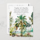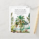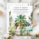 This elegant and beautiful watercolor wedding postcard features a beach and palm trees. The text combines handwritten script and sans serif fonts for a stylish and modern look. This is perfect for a summer beach or tropical destination wedding.