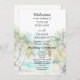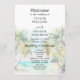This elegant and beautiful watercolor wedding program features a beach, blue sky and palm trees. The text combines handwritten script and sans serif fonts for a stylish and modern look. This is perfect for a summer beach or tropical destination wedding.