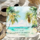 This elegant and beautiful watercolor wedding coaster features a beach, blue sky and palm trees. The text combines handwritten script and sans serif fonts for a stylish and modern look. This is perfect for a summer beach or tropical destination wedding.