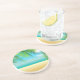 Picture yourself on the beach with this design featuring a tropical beach scene complete with palm trees, sand and surf.