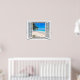 3D Tropical beach and Ocean view, fake window scene, for a windowless office wall. Fun, realistic optical illusion scenic poster for an office or study wall.