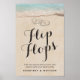 Personalized wedding party sign featuring a summer tropical ocean island background, a vintage sandy beach with two hearts in the shoreline, your initials, and a flip flop text template.