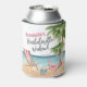 Cute Tropical Beach Girls Weekend Bachelorette Can Cooler. A cool watercolor beach theme with shades of pink and teal, setting the vibe for a beach escape with the bride and her besties, or for every day summer fun. From trips to Florida, California, or even something more international like Mexico, Hawaii or The Bahamas, this girls weekend is going to rock! Cute pink and white beach chair, umbrella, and even a flamingo floaty for some extra fun. Palm trees swaying, shells to collect—it's all about those chill tropical beach vibes. With modern fonts adding a stylish twist, it's the perfect look for your bachelorette weekend. Just you and your crew, making memories against a backdrop of sand and sea. There is an extra art element hiding if you want some more color! There is a yellow sun hiding on the front and back in the design editor. If you want it added, just click on the 'eye' symbol on the front and back design edit. Check out all of the coordinating pieces too!