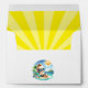 Seal your sunny celebration with this cheerful Here Comes the Son baby shower envelope. Featuring a laid-back baby boy lounging by the ocean and bold retro-style text on the flap, this envelope perfectly matches the tropical baby shower theme. Add a fun and cohesive touch to your stationery suite — ideal for mailing out invitations or thank-you notes in style!