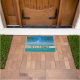 Welcome door mat with a tropical beach theme for your beach house decor. Customize with family name to add a personal touch.