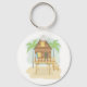 Tropical Beach Hut Surfboards and Palm Trees Keychain