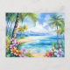 Send a piece of paradise with this stunning tropical beach postcard! Featuring vibrant palm trees, colorful tropical flowers, and a serene ocean view, this watercolor-style artwork captures the perfect island escape. Ideal for vacation keepsakes, travel gifts, or adding a sunny touch to your correspondence.