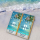 This fun tropical beach and personalized cornhole game board game set features your monogram initial and family name upon tropical palm trees with string lights on a tropical Hawaiian beach, turquoise water, and a white sand beach in rustic typography. This is the perfect game for family reunions or vacations at a beach house, or for a beach wedding reception! Choose from several different colors of bean bag sets for each board. Fine art photography and design © by TK Goforth. For coordinating items, please visit my Beach