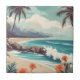 Tropical Beach, Ocean, Hibiscus Flowers Ceramic Tile