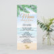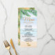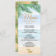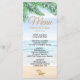 This menu card depicts a romantic scene of green palms, ocean waves and two starfish on a sandy beach. The card reverses to a warm beige with bright green palm leaves. The perfect menu card for your beach wedding. You can click the customize link to add your own menu details. This is part of a matching wedding suite that can be fully personalized.