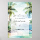 A lovely beach background welcome wedding sign with tropical palms and string lights to match this range of tropical/beach themed wedding stationery. Perfect for summer/beach weddings! Easy to edit the text fields showing with your names and date etc. Visit my shop now to see the full range available including stickers, invitations,menu etc.