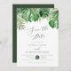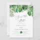 This wedding save the date features watercolor tropical palm leaves and an elegant script font. This makes the perfect addition to your tropical beach luau or island wedding celebration. Easily add your photo to the backside along with your wedding website for a personal touch.