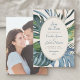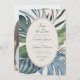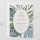 Invite your guests to paradise for a day with this elegant tropical palm leaves design. Featuring a spray of assorted tropical leaves in serene blues and greens and a stylized rattan pattern on the back, this design embodies a breezy day underneath the palm trees. Perfect for your casual beach affair or destination celebration in the tropics. Shop the collection today for matching stationery, and get away to the perfect day!