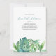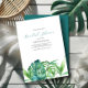 These tropical beach bridal shower invitations by Do Tell A Belle feature a replica of my original watercolor tropical greenery, showcasing palms and monstera leaves in shades of green. The invite card reverses to a complementary emerald green color, adding a touch of elegance to the design. Perfect for a luau or beach destination celebration, these cute wedding invitations offer a coastal chic vibe.