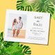 Tropical Beach Wedding simple Save the Date card with an elegant typography and photography design. With customizable lettering, you can add your names, and wedding information. You also add your own photo to add a touch of personalization. Great for planning your destination nuptials.