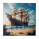 Tropical Beach Pirate Ship Ceramic Tile