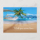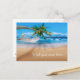 Postcard shown with a photo print of a beautiful tropical beach. Wish you were here...