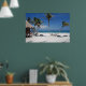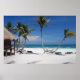 Caribbean beach with white sand, palm trees and huts in Mexico