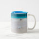 Tropical beach sand and blue ocean water coffee mug or travel cup. Personalize in script text with name or other text. Text can also be removed.