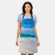 Apron with a photograph of a gorgeous vacation location. Bright blue sky, soft sandy beach with tropical crystal clear blue waters. A lush tree covered mountain in the background. Scenic and tranquil photography.