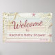 Tropical Beach Seashell Modern Boho Baby Shower Chic Modern Poster Banner features a pretty beach themed design in pastel colors with seashells and the text "Welcome" in elegant pink calligraphy script typography. Perfect for baby shower party decor. Designed by Evco Studio www.zazzle.com/store/evcostudio
