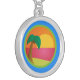 This pretty tropical illustration features a beautiful yellow sunset in an orange sky over vibrant pink water with a sandy beach and palm tree in the foreground! This exotic ocean art is the perfect gift to buy for anyone who loves the sand, sea, sun and original colorful artwork!