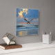 Design features a scenic abstract beach ocean image with a bright orange sky as a backdrop. A cloudy sky is reflected on the water as a flock of birds slowly float over the calm surf at sunset. You can almost feel a soft breeze and smell the salt air!
