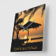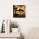 Wall clock featuring a sunset at a tropical beach with your custom text (optional).