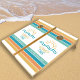 Get ready for summer fun with this customizable cornhole set that features bold tropical colored stripes, a simple illustration of the sun and ocean waves, and customizable text that says, “Sun, Sea, Sand, and Surf.” This fun design will make a great addition to a beach house. Perfect for use during vacations, beach parties, backyard barbeques, or family reunions. Modify the text by adding a family name or your own sentiment.