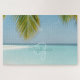 Heavenly tropical beach paradise with turquoise sea & palm tree fronds towering over stunning white sand. Relax and enjoy this pristine dream scene on your moderately difficult Jigsaw Puzzle as you work with the family - or on your own, to piece it together. Easy to customize with your own monogram name & initial in popular font typography - or delete text if you prefer.