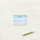Sticky notes with a landscape photograph of a tropical beach. Warm sand, azure water and blue sky with tropical leaves along the top. Personalize with your names and wedding date and location. Or other text which suits your purposes.