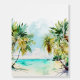 This elegant and beautiful watercolor wedding table seating chart features a beach, blue sky and palm trees. The text combines handwritten script and sans serif fonts for a stylish and modern look. This is perfect for a summer beach or tropical destination wedding.