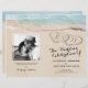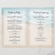 Elegant beach destination wedding ceremony program cards featuring a summer tropical beach island background, a vintage sandy beach with two hearts in the shoreline, your initials and a wedding program template that is easy to personalize.PLEASE NOTE: These come as a flat piece of quality paper, you will need to fold them yourself.