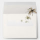 Tropical Island Beach Wedding, 5x7 wedding invitation envelope. Envelope is lined with a watercolor island beach scene. Features, return address on back flap with palm tree accent detail.